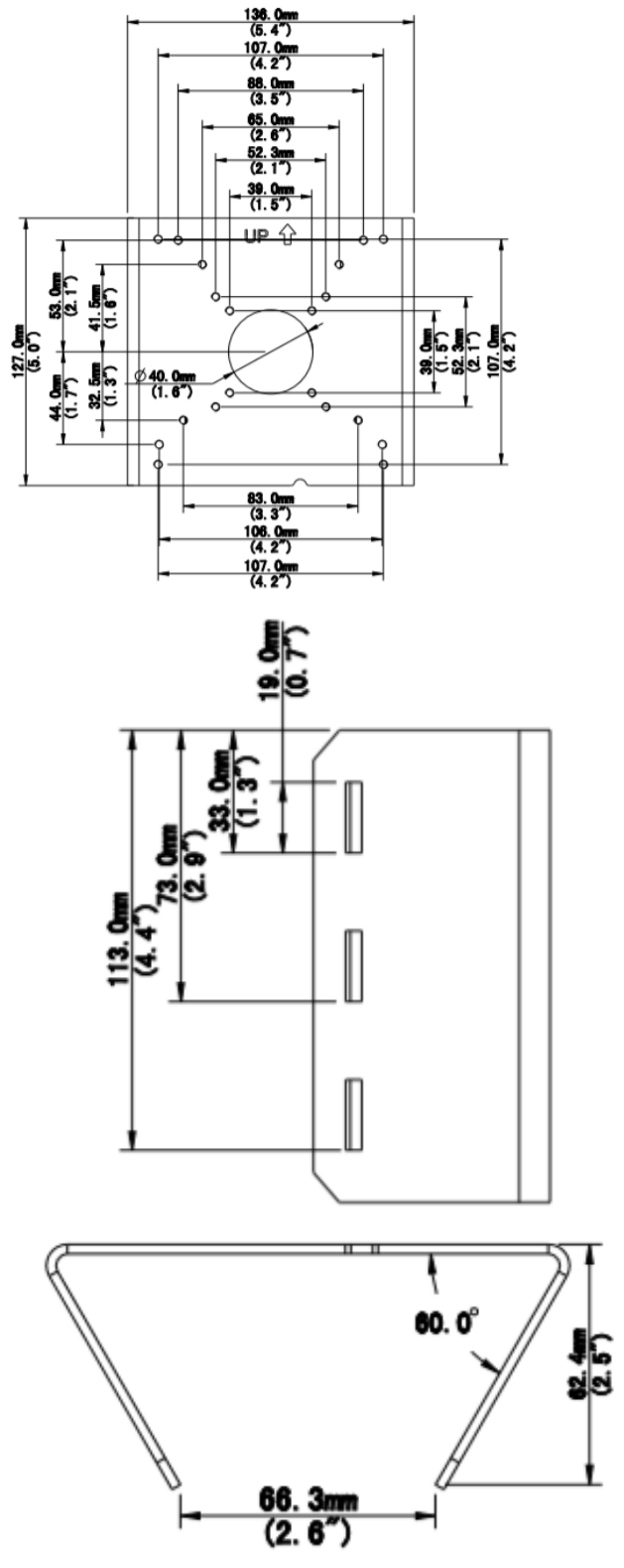 127mmx138mmx62.4mm (5”x5.4”x2.5”) |