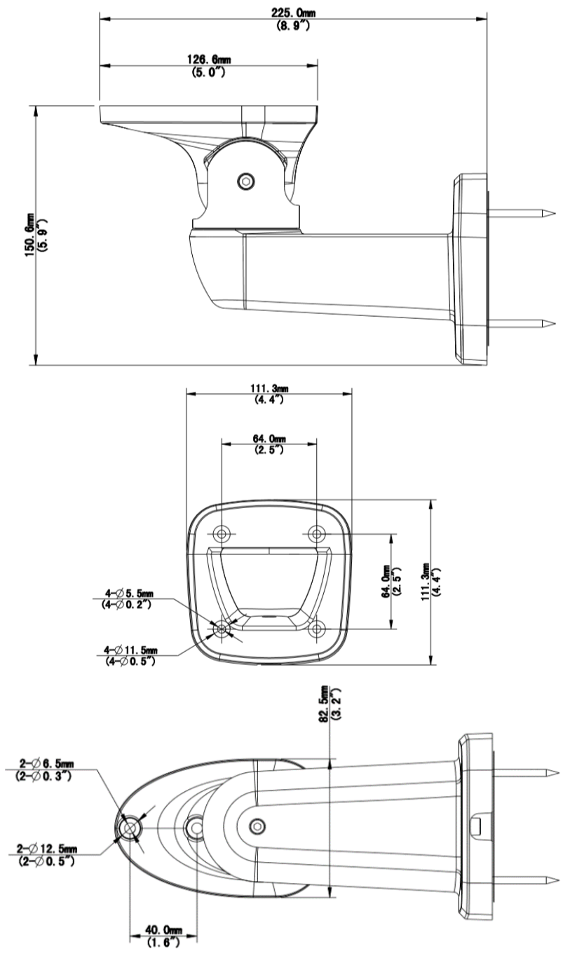 225.0mmx111.3mmx150.6mm(8.9” x 4.4”x 5.9”) |