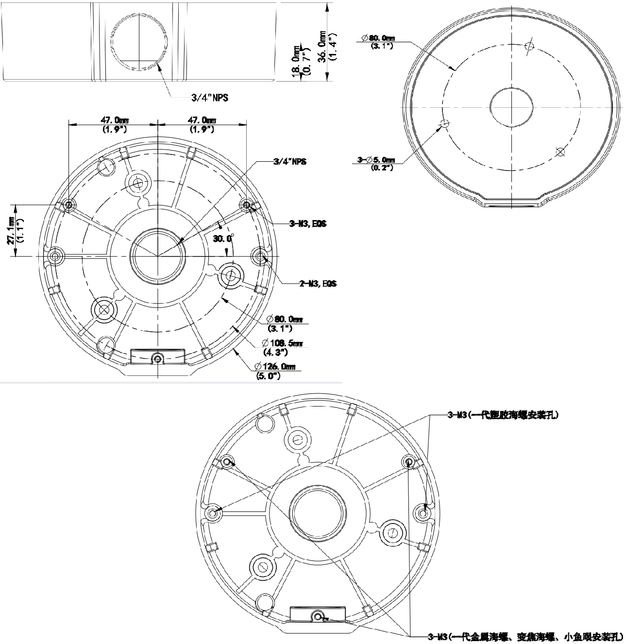 Junction box for IPC363X Series, IPC36XXS/E Series fixed dome and 4MP fisheye |