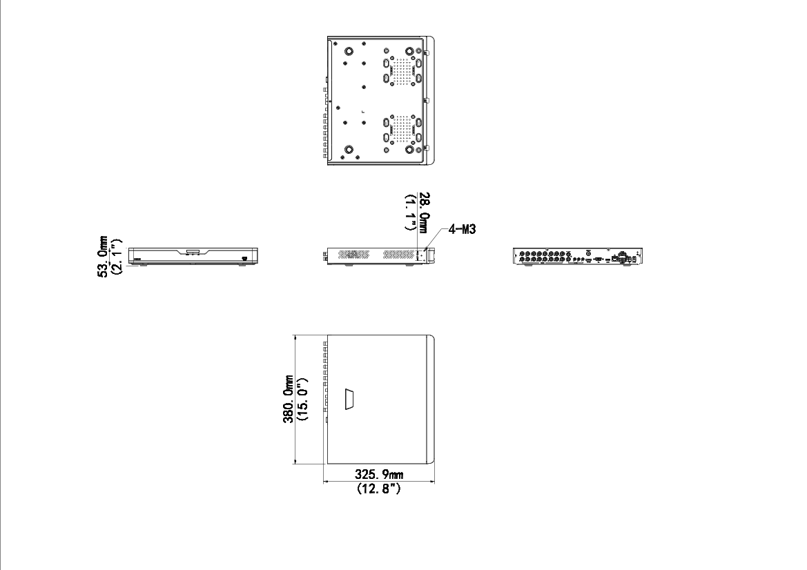 380mm × 326mm × 53mm (15.0" × 12.8"×2.1") |