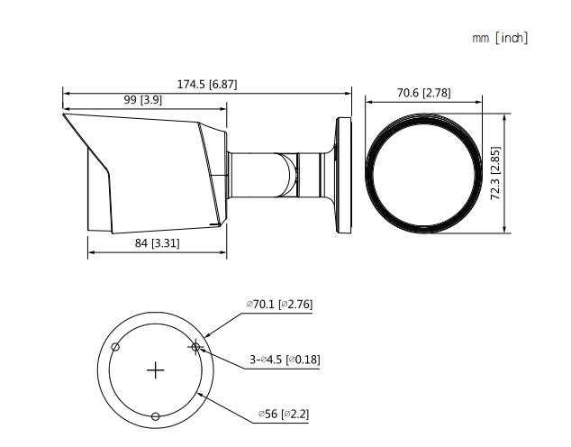 174.5 mm × 72.3 mm × 70.6 mm ( 6.87" × 2.85" × 2.78" ) |