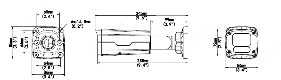 245× 86 × 85mm (9.6” × 3.4” × 3.3”) |