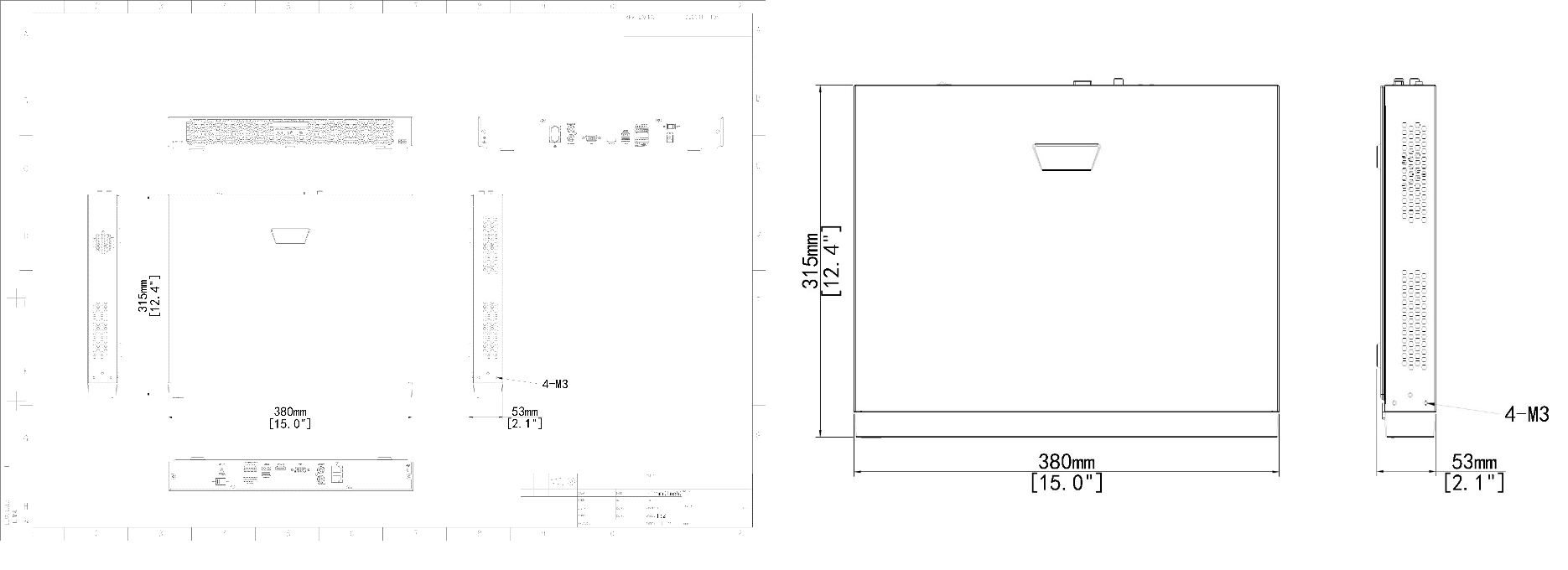380mm × 315mm × 53mm (15.0"×12.4"×2.1") |