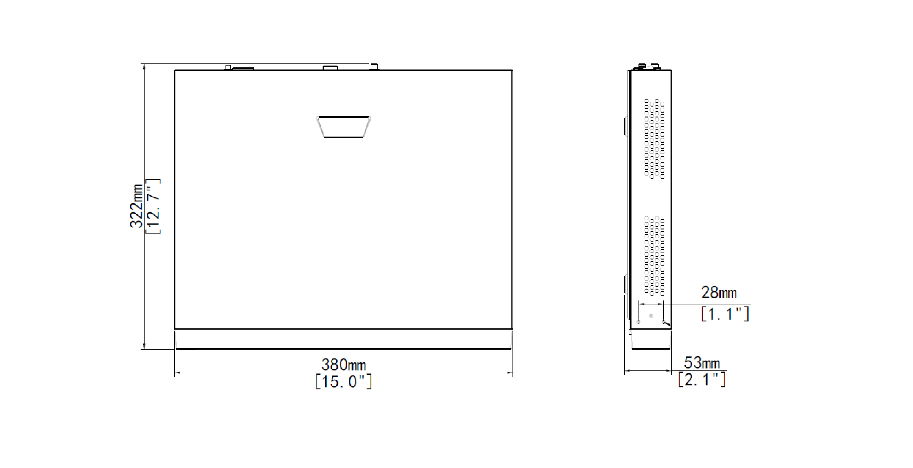 380mm × 322mm × 53mm (15.0"×12.7"×2.1") |