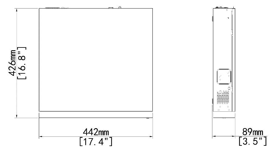 442mm × 426mm × 89mm (17.4"×16.8"×3.5") |