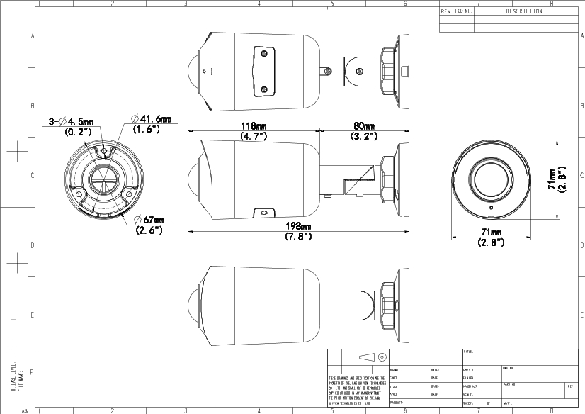 198× 71 × 71mm (7.8 × 2.8 × 2.8)