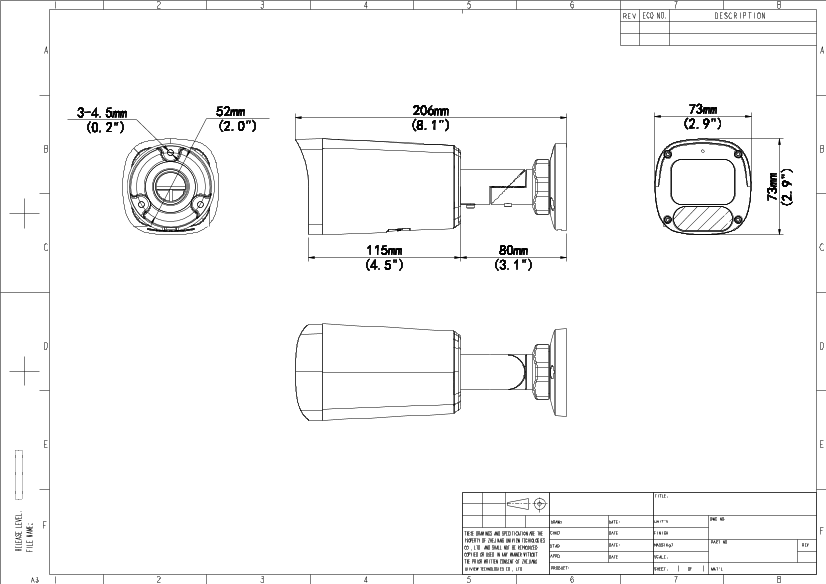 206 × 73 × 73mm (8.1 × 2.9 × 2.9)