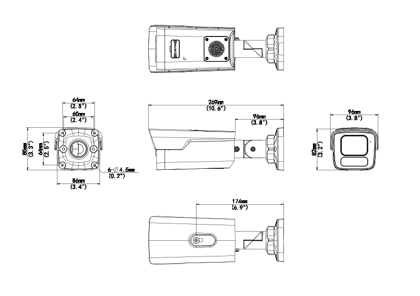 269 × 96 × 82mm (10.6 × 3.8 × 3.2)