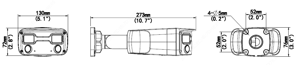 273× 130 × 76mm (10.7” × 5.1” × 3.0”)