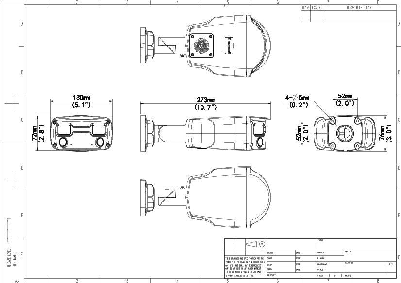273 × 130 × 76mm (10.7” × 5.1” × 3.0”) |