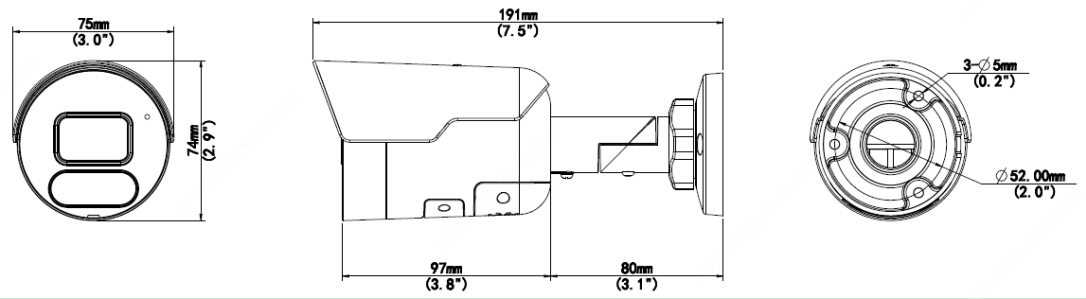 191× 75 × 74mm (7.5” × 3.0” × 2.9”) |
